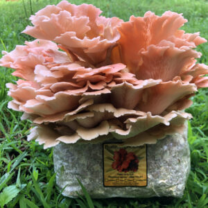 The Pink Oyster is grown during the warmer months indoors under blue LED lights and the caps grow to be a brilliant RED! This mushroom should be picked young- as they age the fragrance intensifies and the color fades so we prefer to pick these mid-way through maturity given that they also store much better than older fruitbodies. Pink Oysters can be grown year-round indoors or intercropped with greenhouse plant production and can fruit in as little as 7-10 days at temperatures around 85-90 °F! We also use this mushroom for classroom activities since they fruit very quickly for students and teachers to observe.