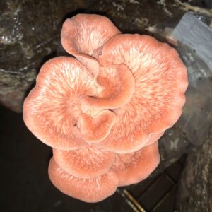 Pink oyster mushroom cluster