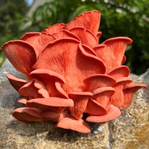 Pink Oyster mushrooms can be cultivated on invasive dried plants like kudzu and water hyacinth.